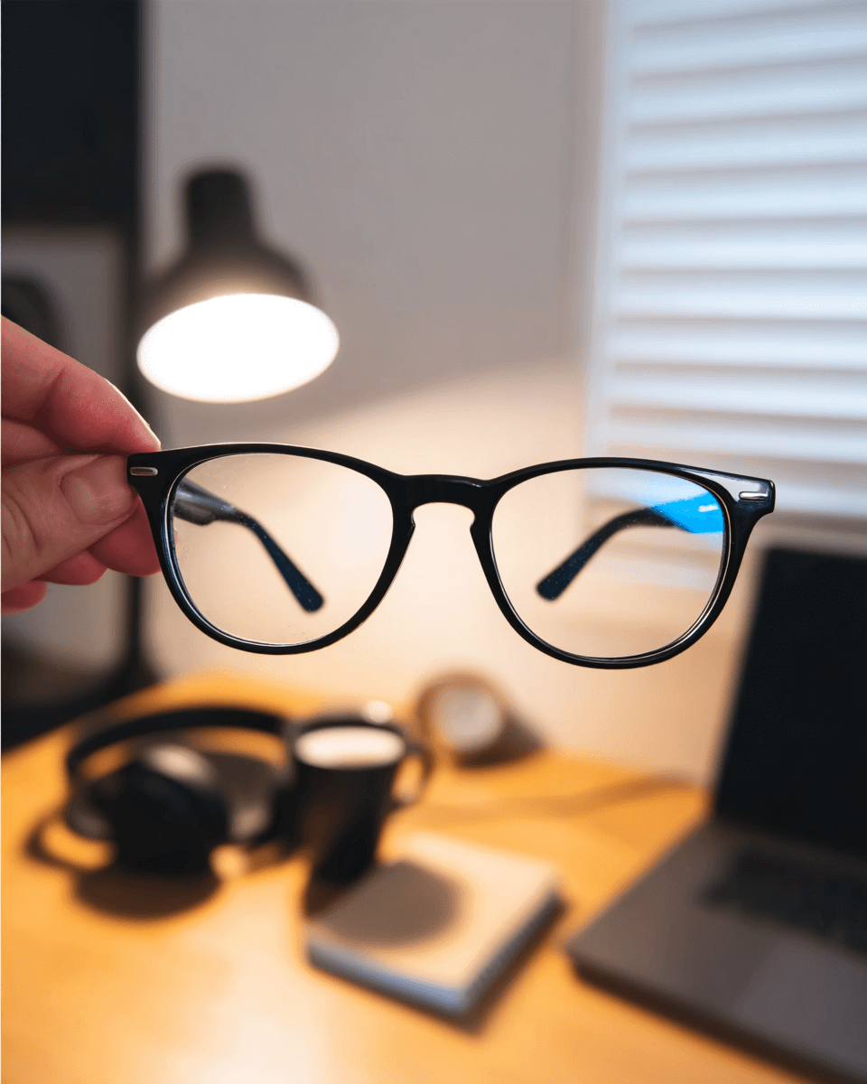 LumeGuard™ Blue Light Glasses filter out the harsh blue light from phones, laptops, TVs, and LED lighting. This helps reduce headaches, eye strain, fatigue, and disrupted sleep caused by long screen use.