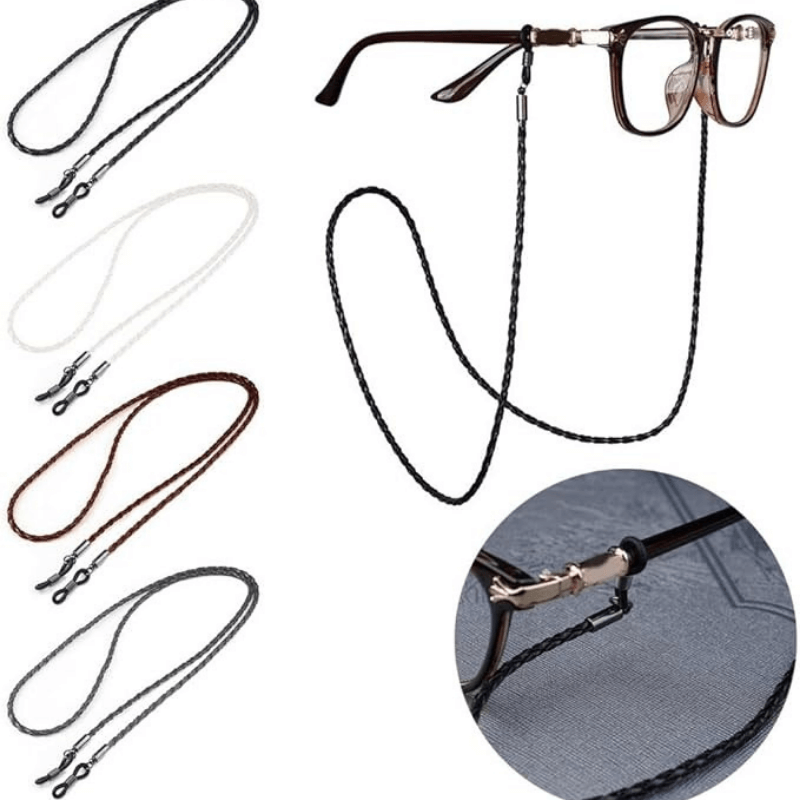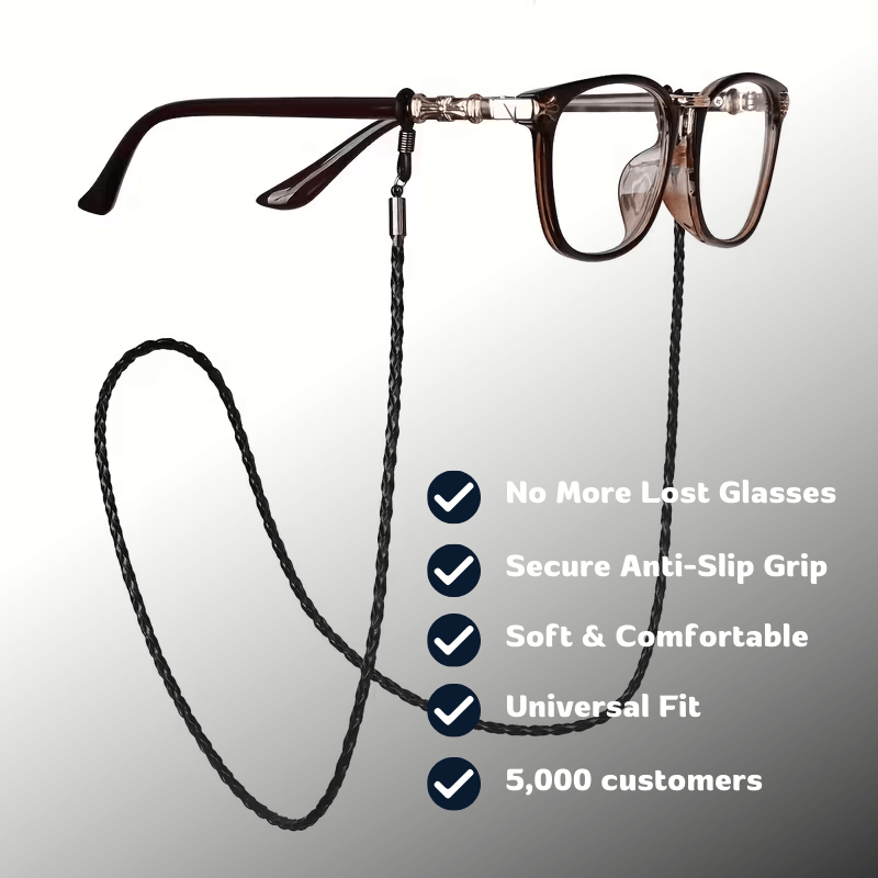 The braided faux-leather design feels soft on your skin while giving you a reliable, comfortable way to keep your glasses close — whether you're working, travelling, or on the go.